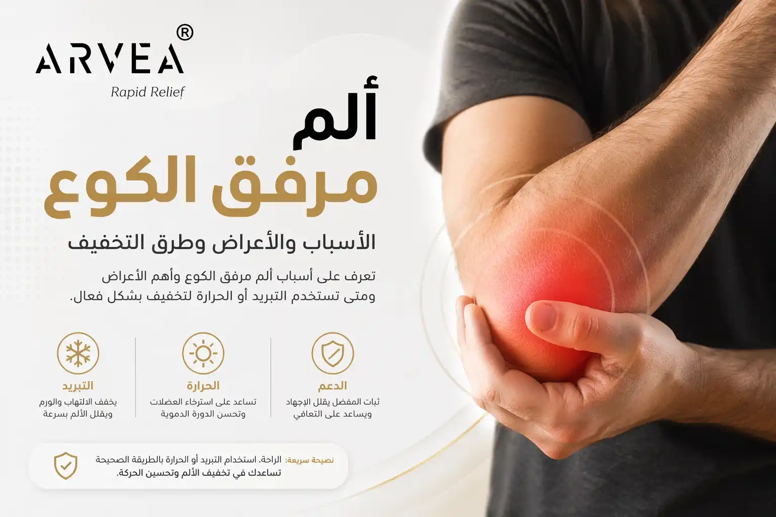 In this guide, you will learn about the causes of elbow pain, the most important symptoms, and when to use cold therapy or heat therapy to achieve the best possible results, along with trusted internal and external links to explore the topic properly.